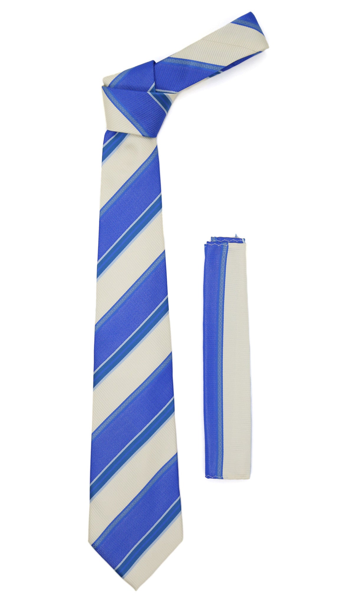 Microfiber Blue Beige Striped Tie and Hankie Set