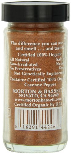 Enjoy Morton & Bassett Organic Cayenne Pepper. A Dash Gives A Snappy Taste To Egg Salads, Cheese Souffles And Hollandaise Sauces. Cayenne Pepper Puts The Fiery Flavor In Barbecue Sauces, Deviled Eggs And Corned Beef Hash. It Livens Up All Mexican Style Dishes. Start With A Pinch Or Two And Adjust To Personal Preference. (Note: Description is informational only. Please refer to ingredients label on product prior to use and address any health questions to your Health Professional prior to use.