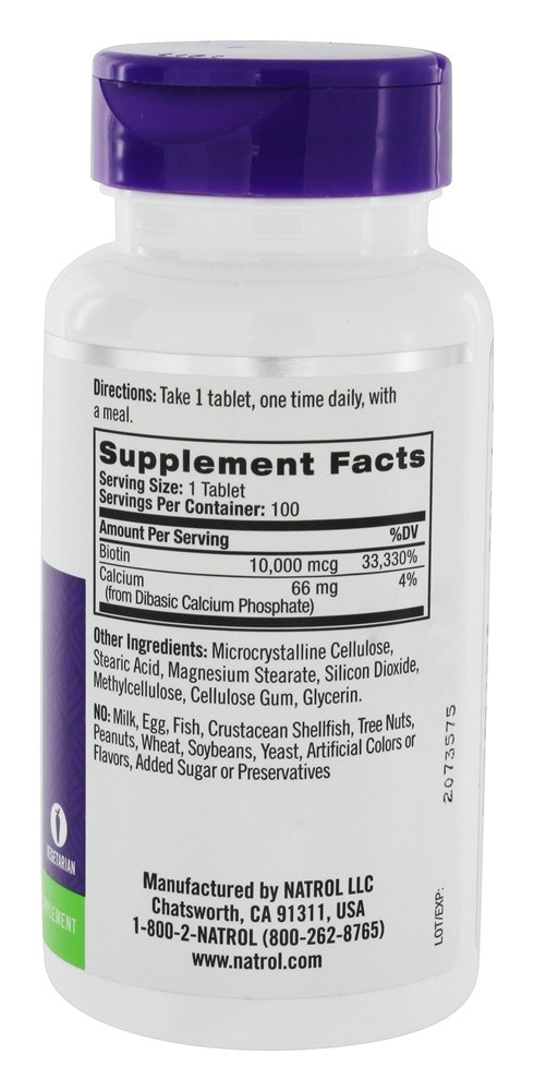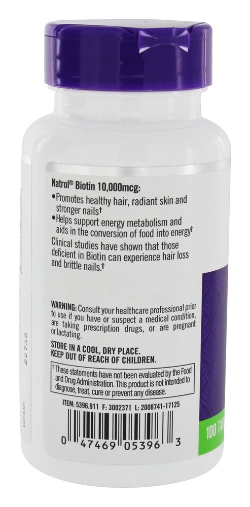 Natrol??? Biotin supports healthy hair and nails, in addition to energy production. A water-soluble B-complex vitamin, biotin is necessary for cell growth and the production and metabolism of fat into amino acids.