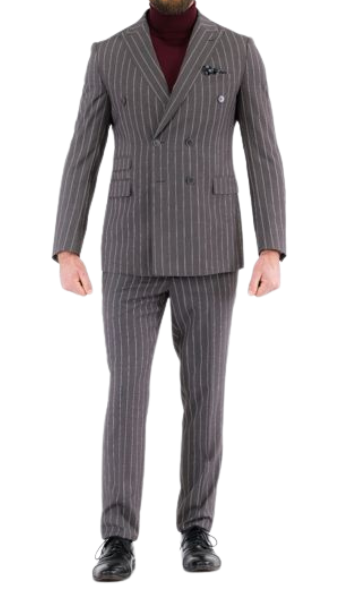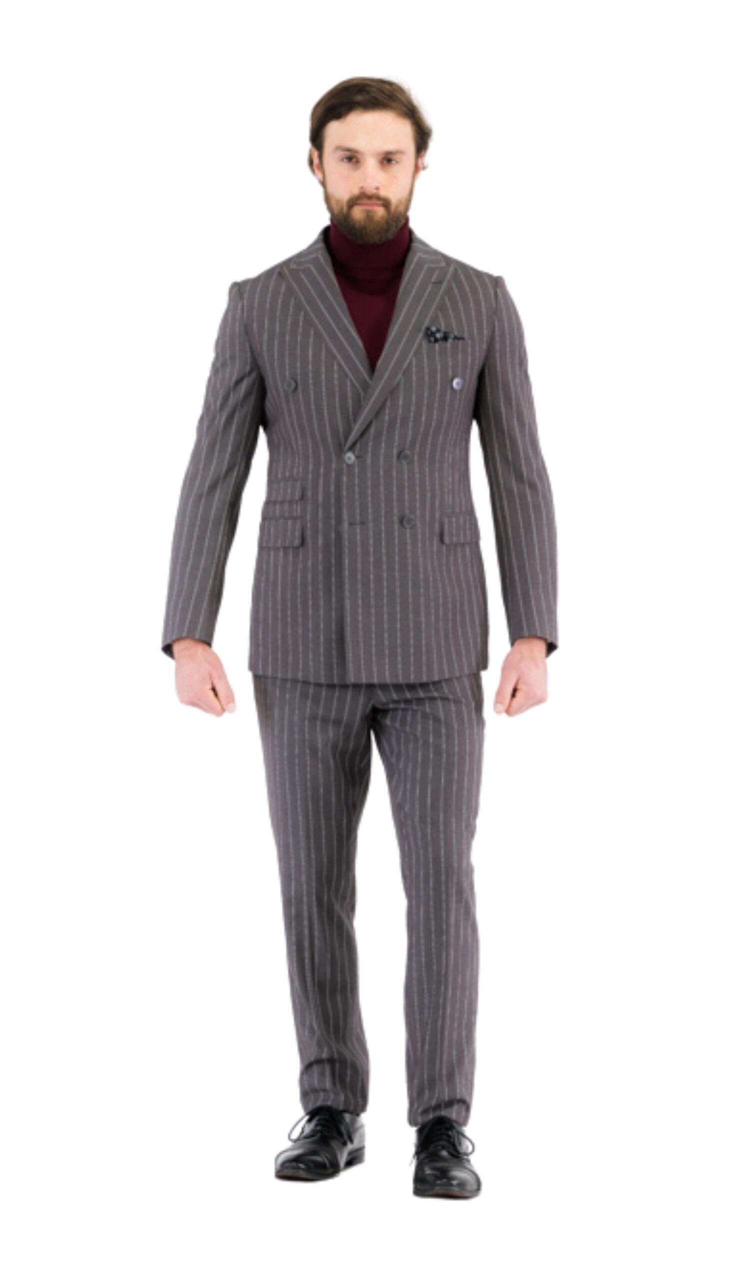 Fabric and Finish: Constructed from premium quality fabric, the suit boasts a luxurious texture and impeccable finish, ensuring both comfort and durability. The attention to detail is evident in every aspect, from the meticulously tailored lines to the exquisite craftsmanship. The peak lapel double-breasted suit encapsulates a perfect balance between classic elegance and modern sophistication, making it a versatile addition to any stylish wardrobe.