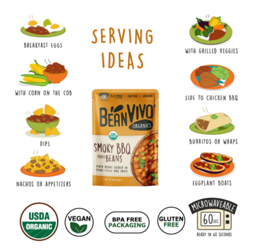 BeanVivo Organic Smoky BBQ Pinto Beans 10 oz (Pack of 6)
