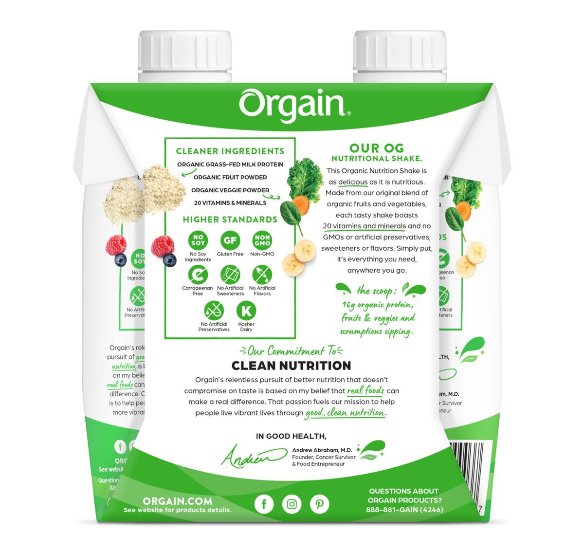 Orgain is the world’s first ready-to-drink certified organic meal replacement made from only the highest quality ingredients. Loaded with 16 grams of organic protein, organic complex carbohydrates from brown rice, organic spinach, kale, beets, tomatoes. Highest quality organic cocoa. No artificial flavoring. USDA organic