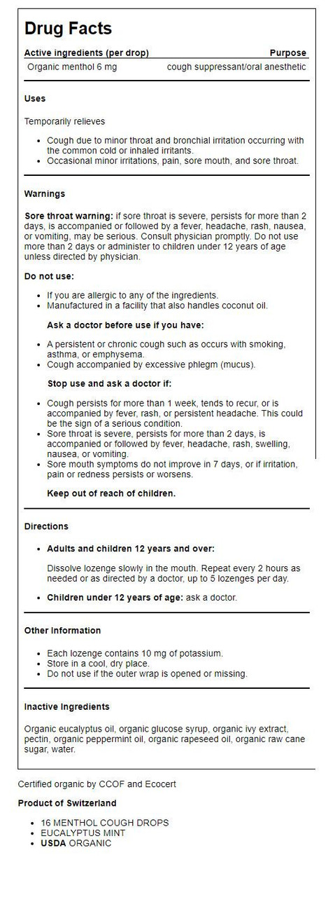 Traditional Medicinals Organic Throat Coat Eucalyptus Mint Cough Drops 16 Drops (Pack of 12)