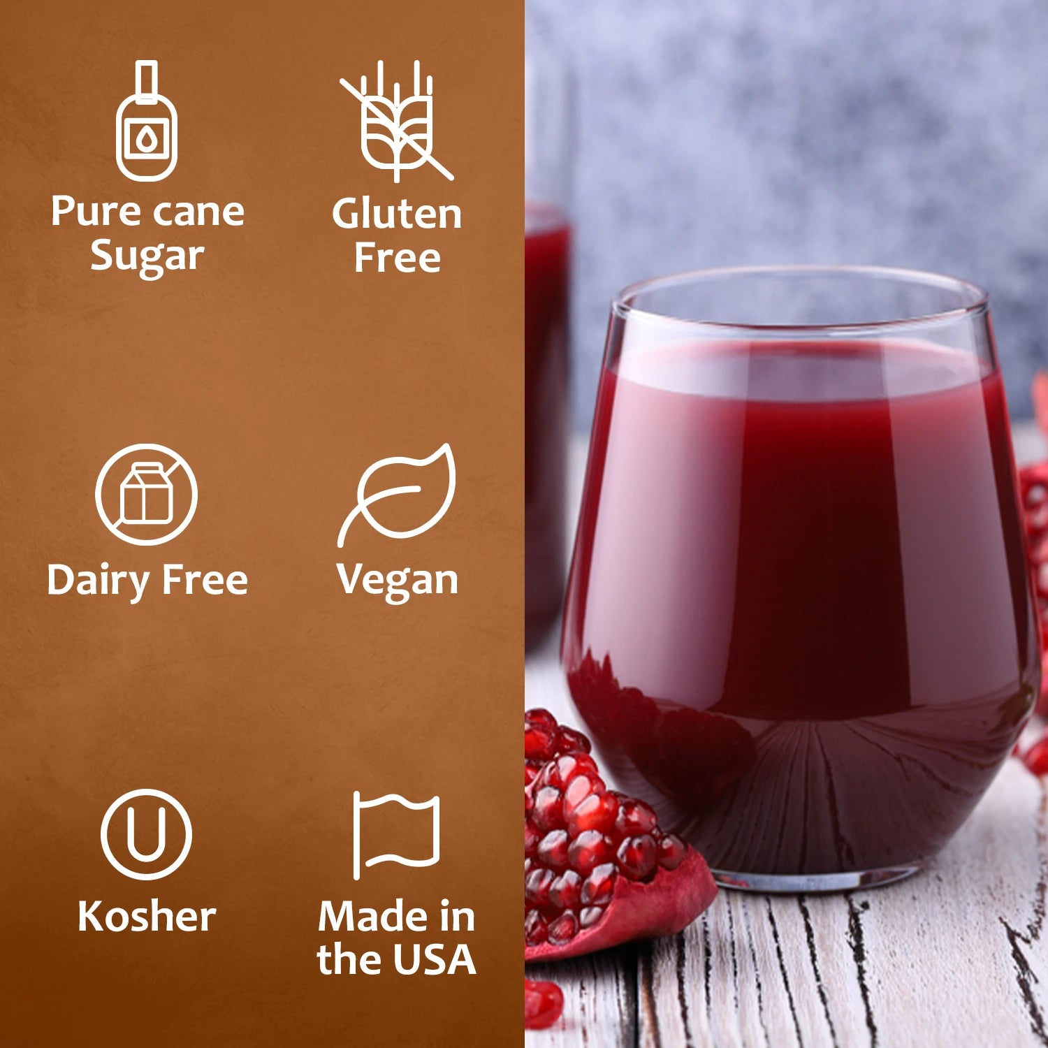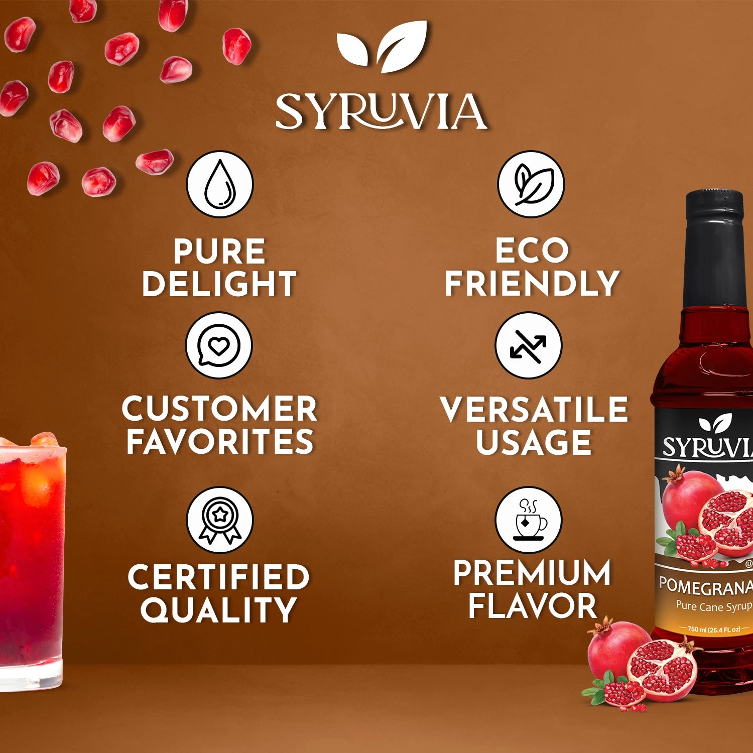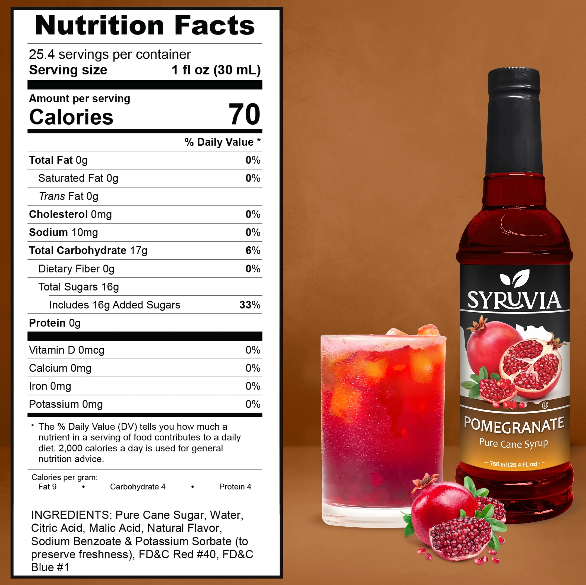 - Pure Cane Sugar: Syruvia Pomegranate Syrup is sweetened with pure cane sugar for a natural, authentic sweetness.