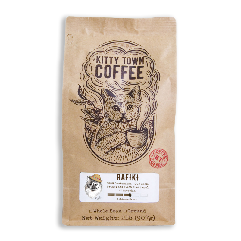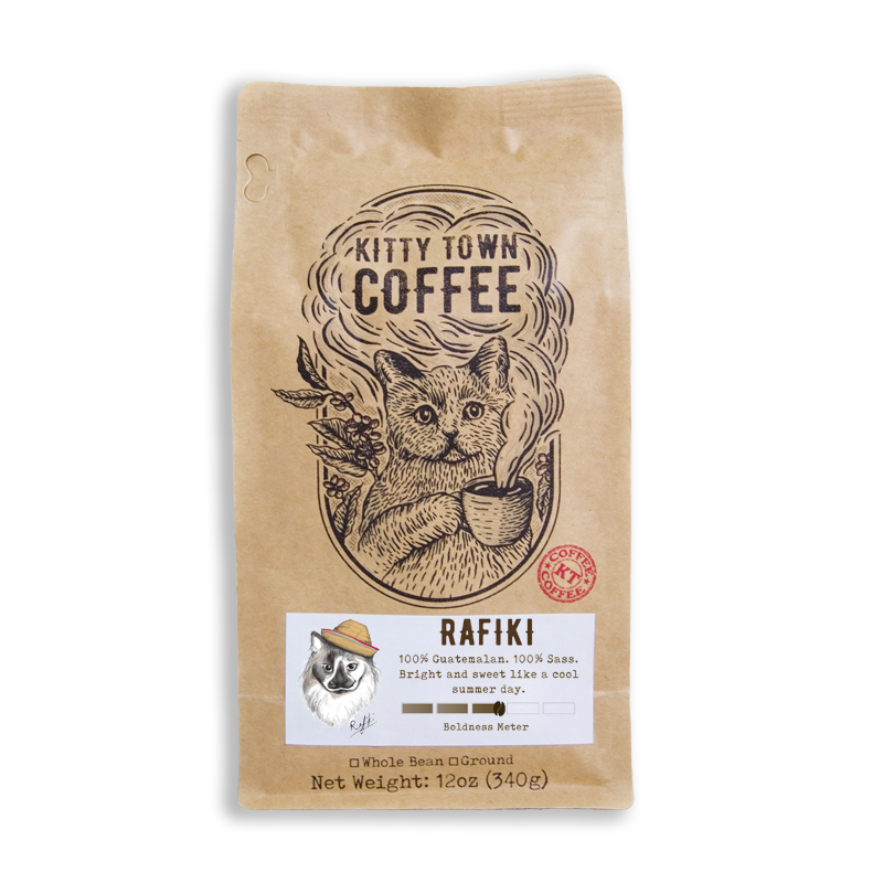 We were developing a Guatemalan coffee but didn’t have a cat picked out to be the face of this great blend. That’s when we met Rafiki, who actually lived in Guatemala! Enjoy this deliciously rich and smooth coffee with notes of caramel and sweet apricots.