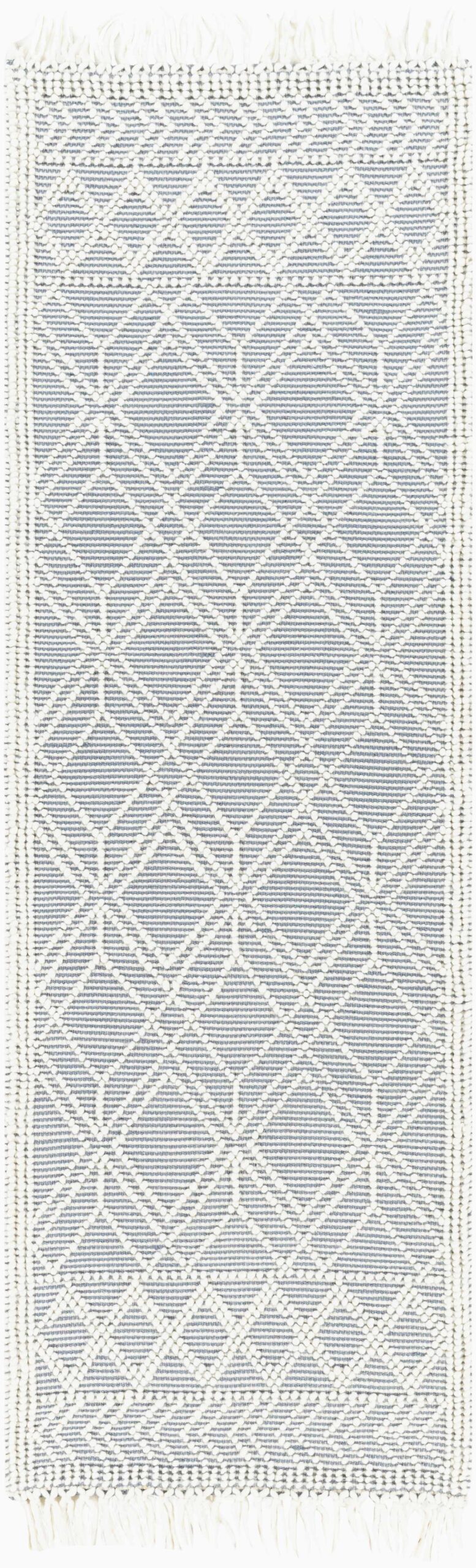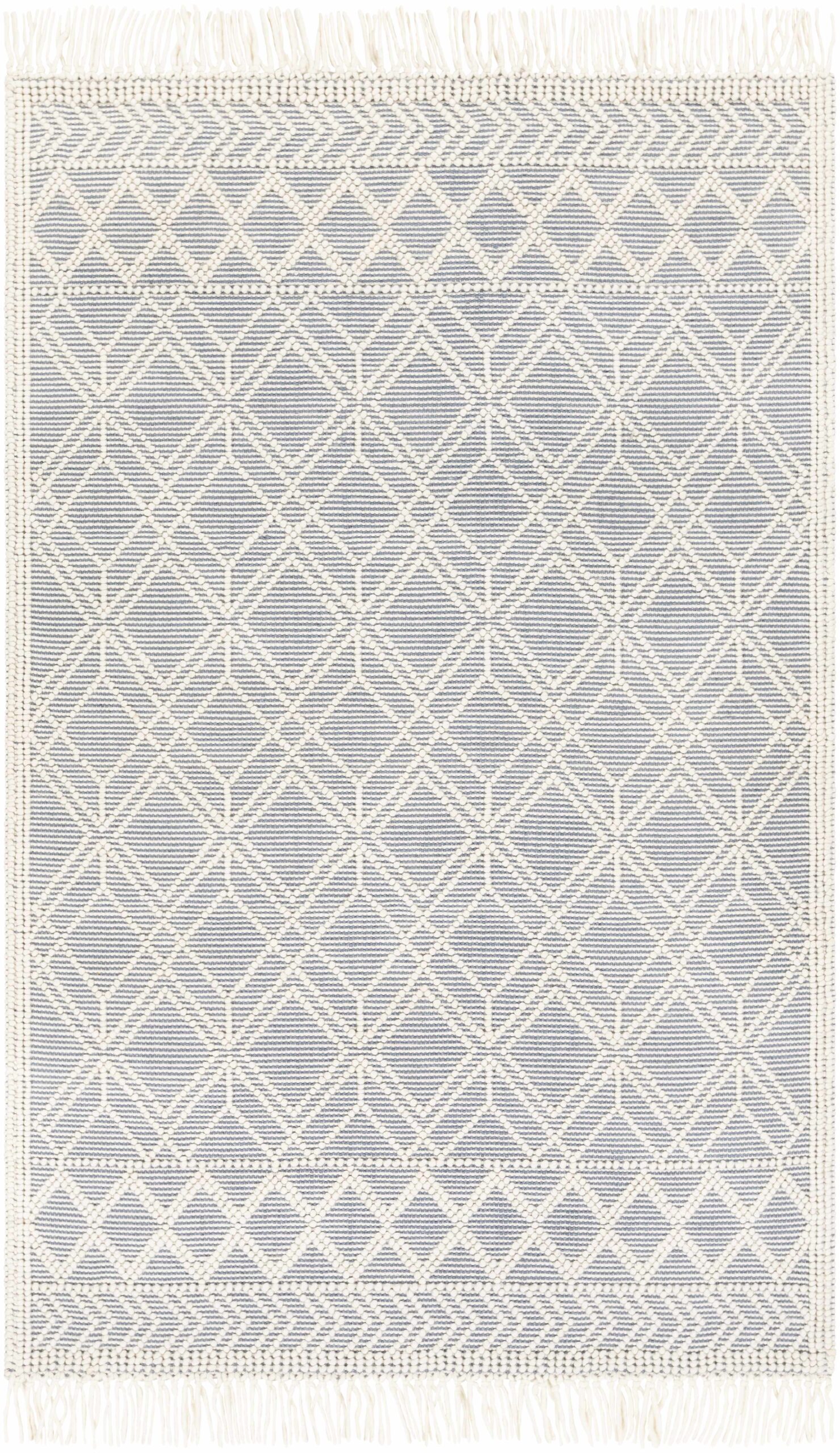 | About: This hand-woven wool and cotton rug features a sophisticated trellis pattern, offering a blend of traditional charm and contemporary elegance. The high-low texture of the rug adds a unique tactile element, enhancing its visual appeal and comfort underfoot. Adorned with tasteful tassels, this rug brings a classic yet modern touch to any room. Its combination of wool and cotton materials ensures durability while providing a soft, inviting surface, making it a luxurious and practical choice for any living space. |