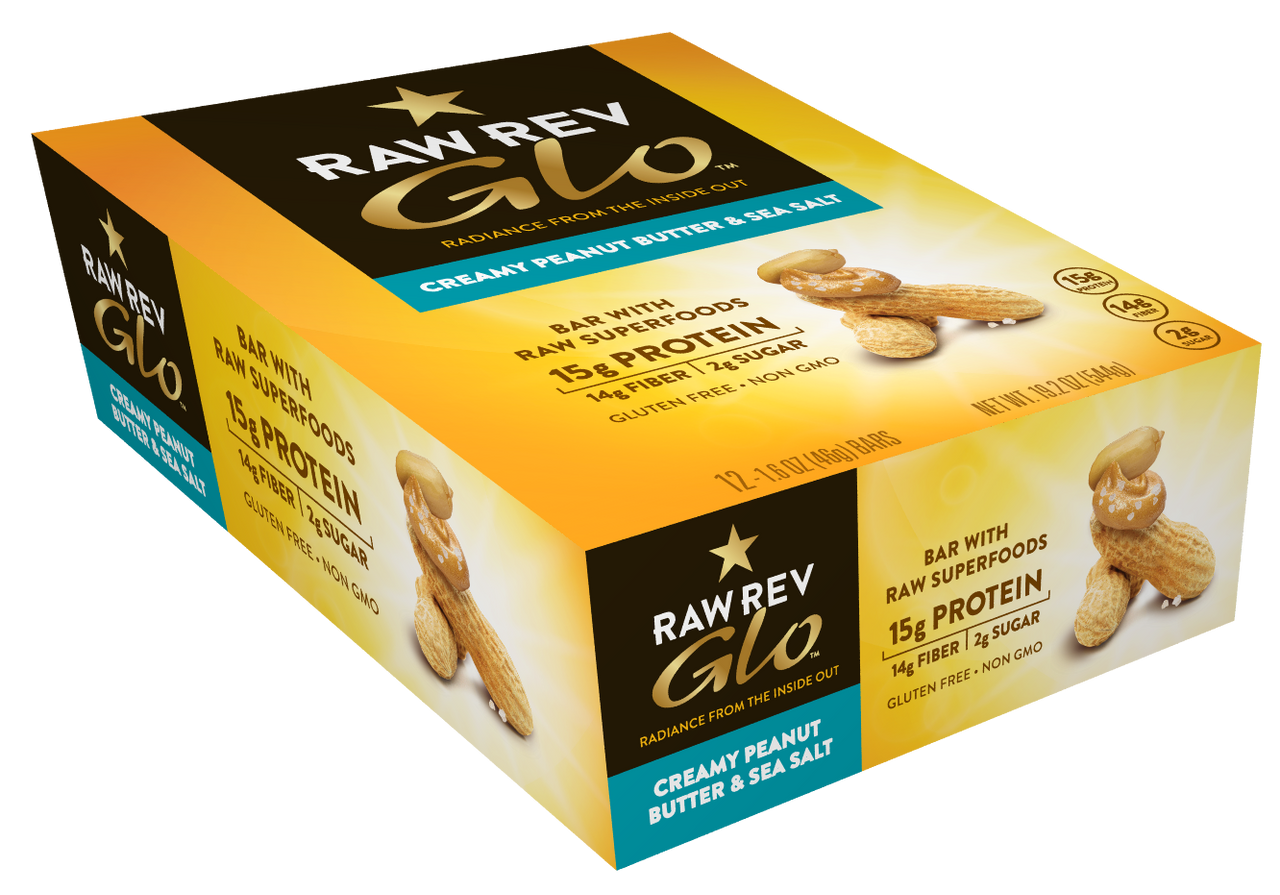 The raw rev glow creamy peanut butter and sea salt bar has a creamy, delicious taste. Includes organic and raw ingredients with omega-rich superfoods to keep you glowing from the inside out. Each bar contains easily digestible plant based proteins, amino acids and trace minerals to keep your body lean and active. Also contains omega rich organic chia, organic flax seeds and mineral rich sea salt for glowing health. Raw rev has raised the bar on our commitment to taste, nutrition and affordability. Always free from go’s and artificial ingredients.