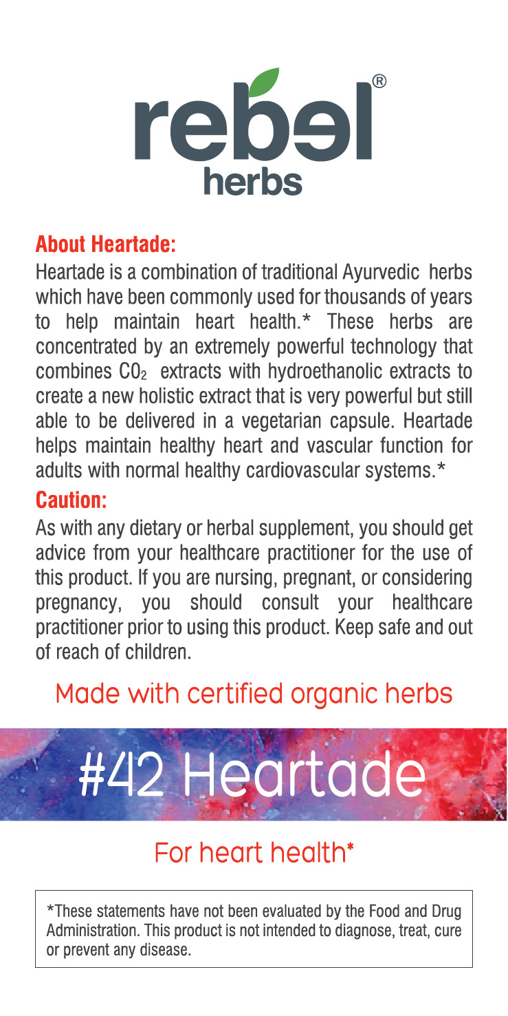Heartade is a blend of herbs used in Ayurveda for thousands of years. Our extraction technology blends both lipophilic and hydrophilic extracts for optimum bioavailability and absorption.*