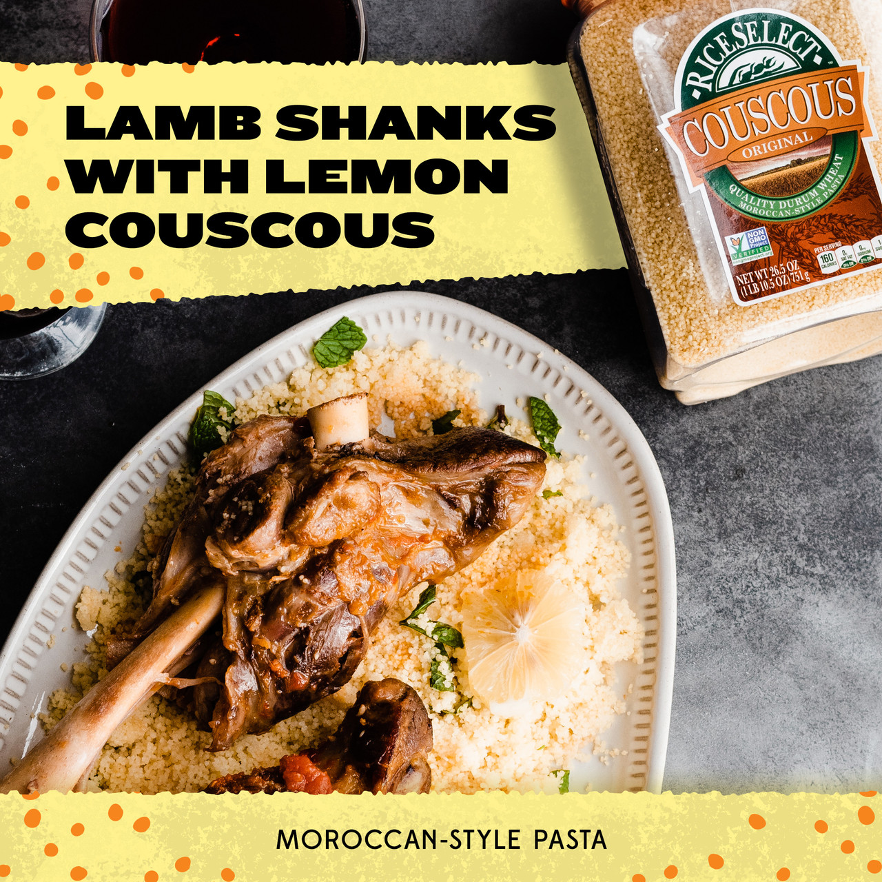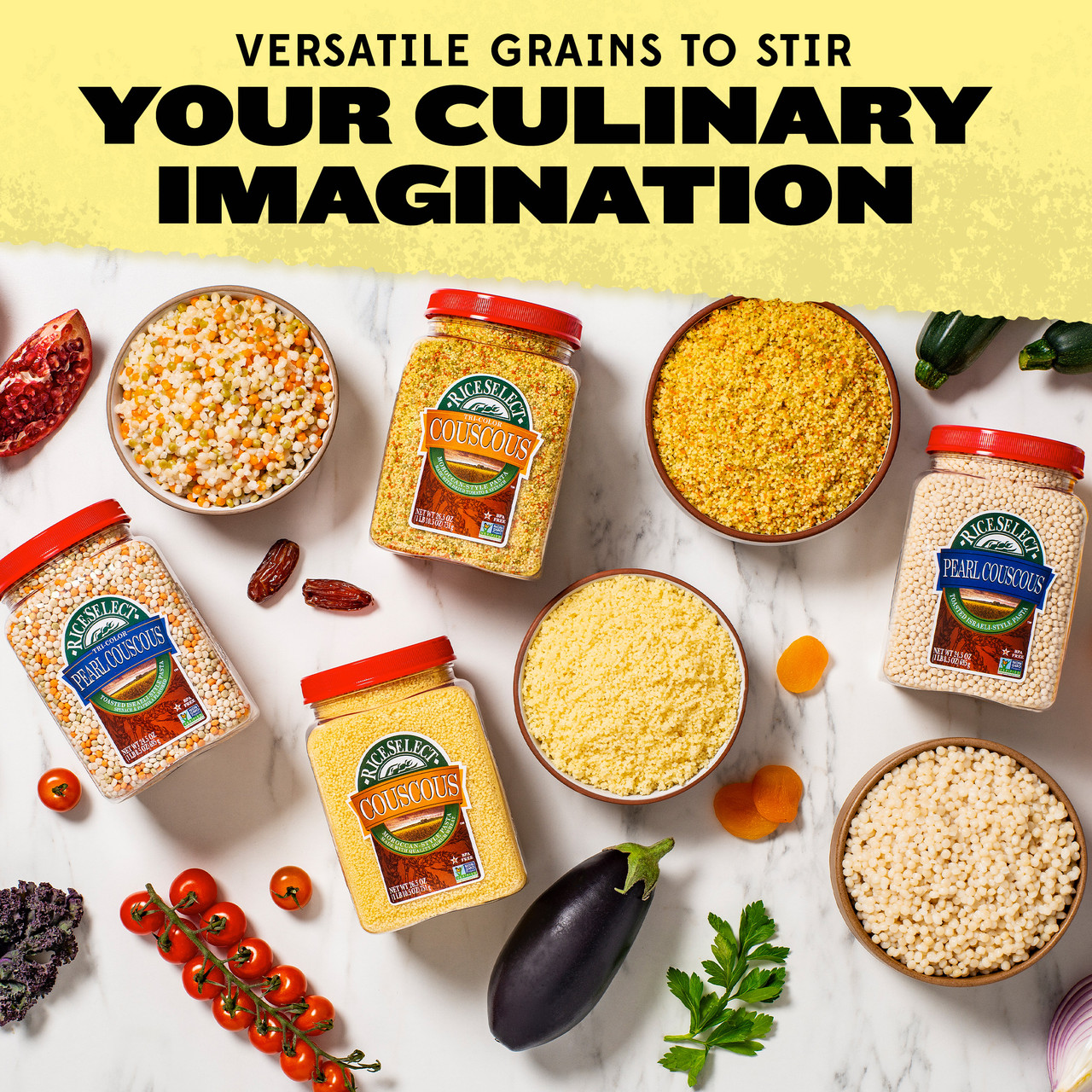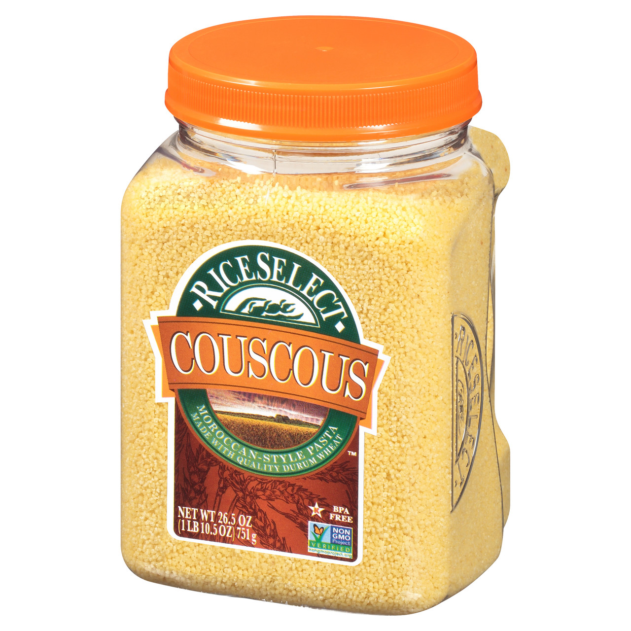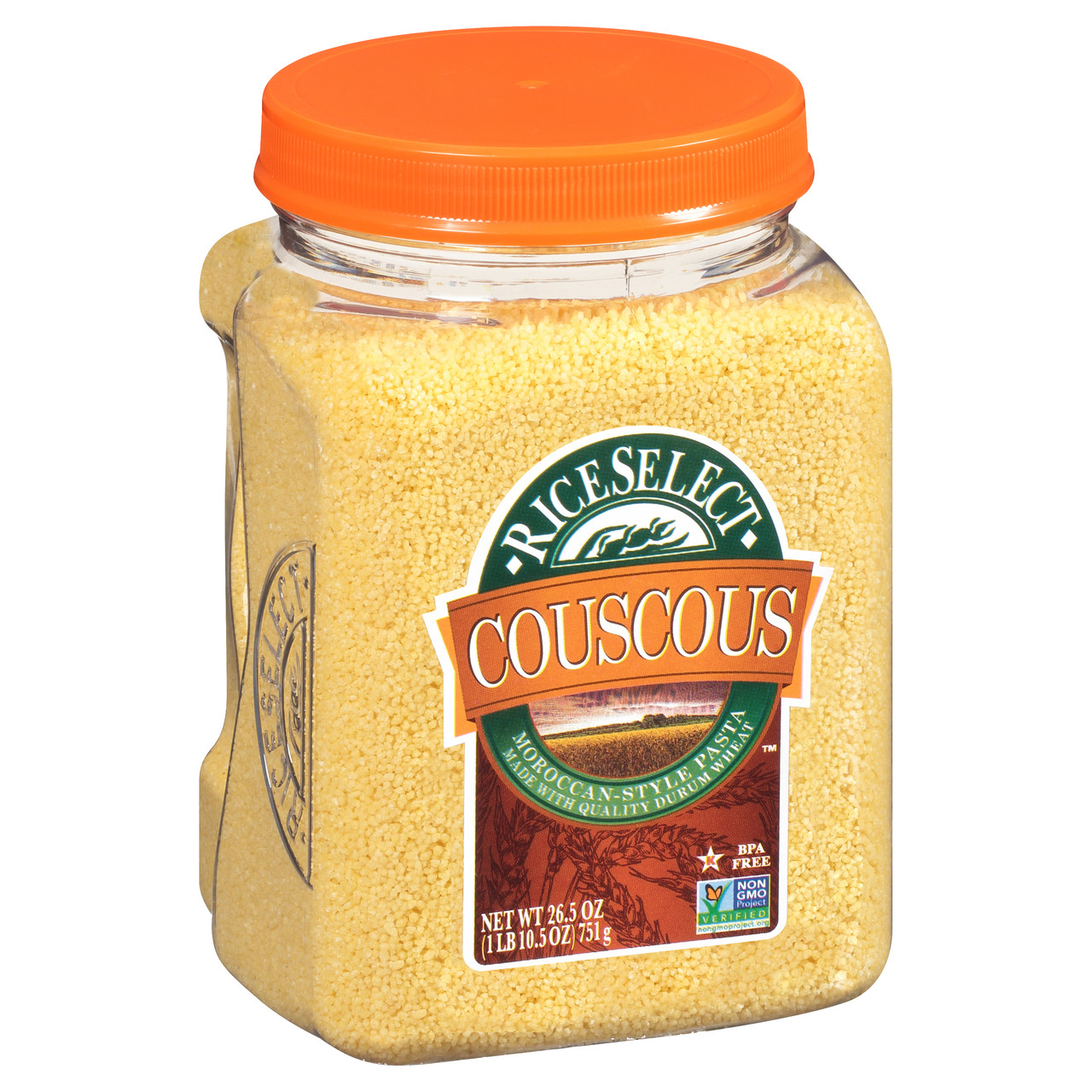 Our traditional Couscous is a tiny pasta that is extremely light and fluffy when cooked. Golden in color. Versatile. All natural. A quick and easy substitute for rice or potatoes. Star-K Kosher Certified.