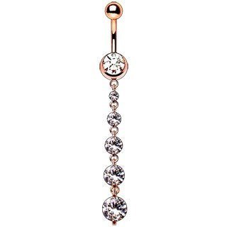 • Five different size round Clear CZ cascade down from the navel ring