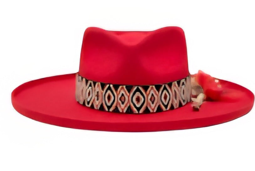 Exude elegance whenever you wear the statement-making Scarlet Fedora for women. From the exclusive fiery wool, the grosgrain band, cord and flower trim, and curled brim. This piece gives you the luxurious comfort you always wanted in a hat.