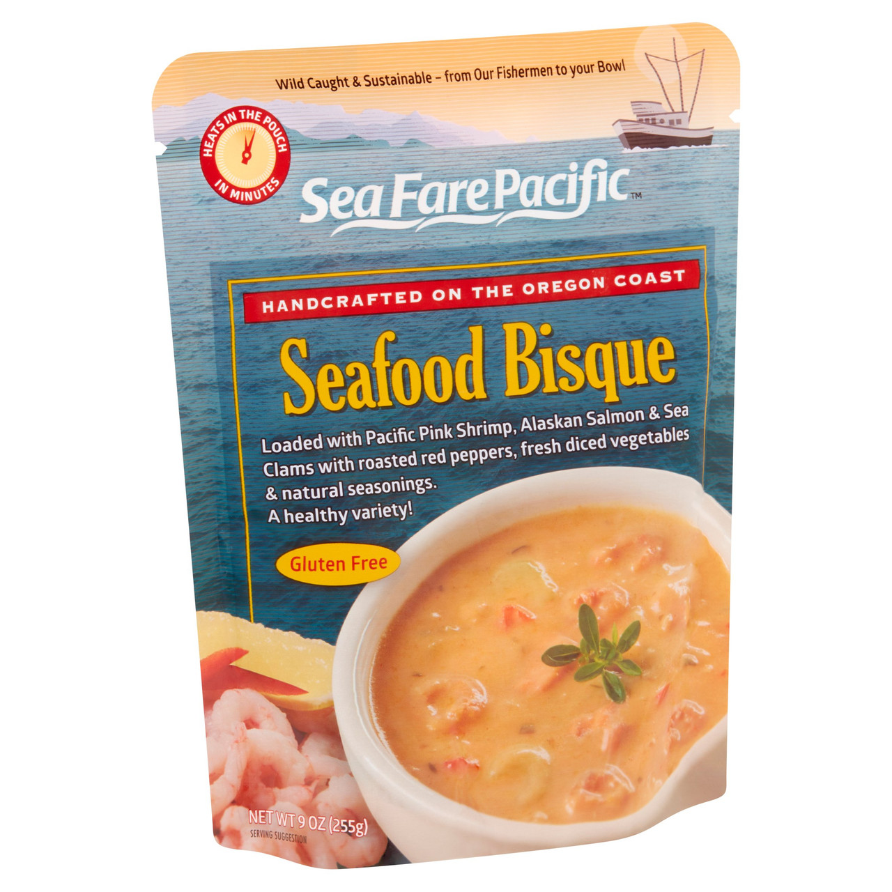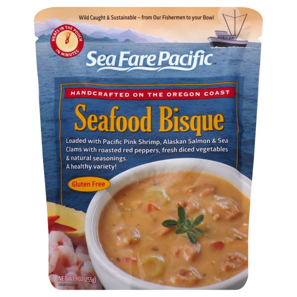 Enjoy Seafare Pacific Seafood Bisque. Sea Fare Pacific is proud to offer Sustainable, Wild Caught Seafood in an environmentally-friendly pouch! No preservatives. No fillers. Only natural fish oils, a significant source of Omega3s. Just pure and simple seafood delight! (note: description is informational only. Please refer to product package for all ingredients and consult your health professional with any questions prior to use.)