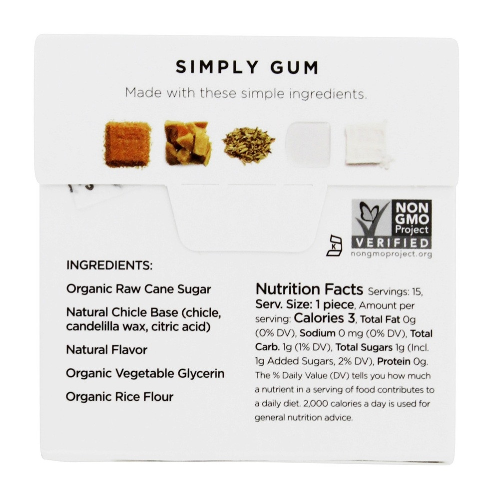 Simply Gum All Natural Gum Fennel Licorice is made with only 6 ingredients. Simply Gum is the only brand in the United States that uses 100% natural ingredients without any synthetics. Regular chewing gum is packed with artificial substances that are potentially toxic, including plastic, aspartame, and BHT. Because they only use natural ingredients, their gum is not only better for your body, it’s also biodegradable and better for the planet.