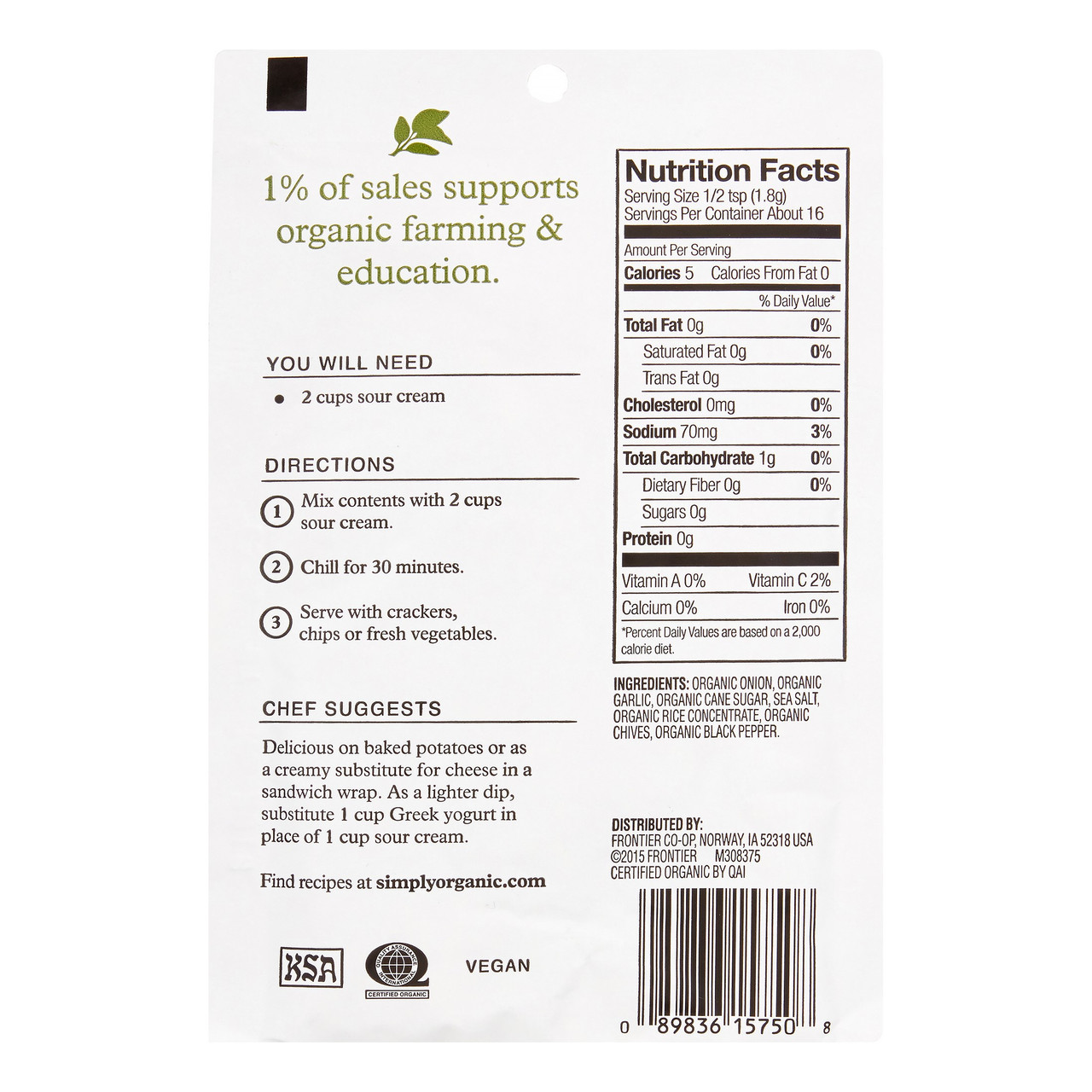 There??s a whole garden of flavor in this bright and herby dip mix, featuring pungent garlic, green-oniony chives and aromatic black pepper. A bowl of this dip creates a fresh, flavorful, and creamy centerpiece to your platters.