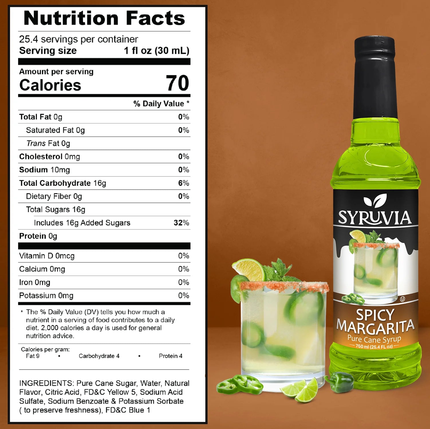 - Syruvia Spicy Margarita: Sweetened with pure cane sugar for a genuine, natural sweetness.