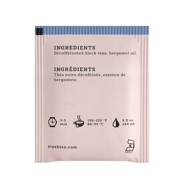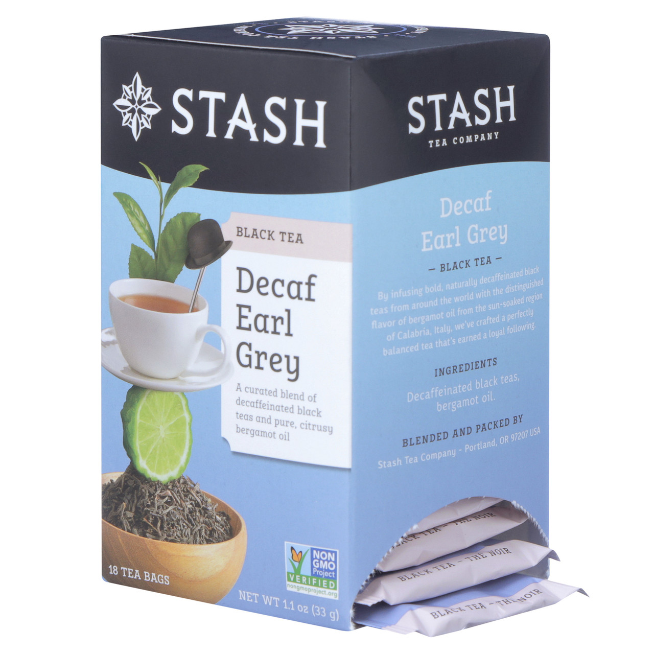 We’ve created a decaffeinated version of our popular Earl Grey that has all the rich flavor with less than 6 mg of caffeine per cup (compared with 40 mg for our regular Earl Grey and 90 mg in a cup of coffee). Stash Decaf Earl Grey is made with naturally decaffeinated black teas using a completely natural European process which removes 99.5% of the caffeine but retains all the flavor, color and aroma of the tea. Earl Grey is a black tea flavored with bergamot, an oil extracted from a pear-shaped Mediterranean citrus fruit about the size of an orange. Our Decaf Earl Grey is a versatile tea, at its best in the afternoon or after dinner. It brews a beautiful amber cup with a distinctive flavor and lightly fragrant aroma. Delicious plain, this tea may also be served with sugar and milk. Plus it makes a wonderful, refreshing iced tea.