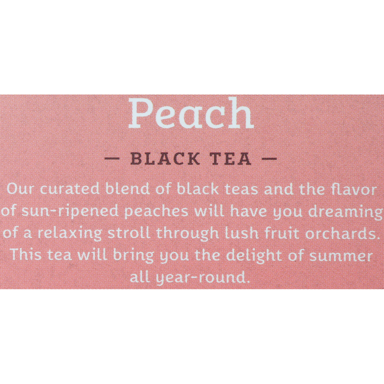 Choice black teas blended with the natural flavor of fresh, ripe peaches for a fragrant aroma and a delicately sweet, juicy taste. Fantastic hot or cold.