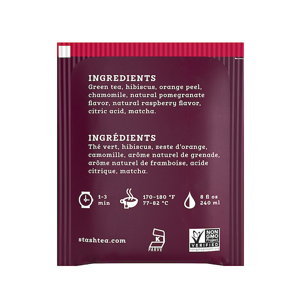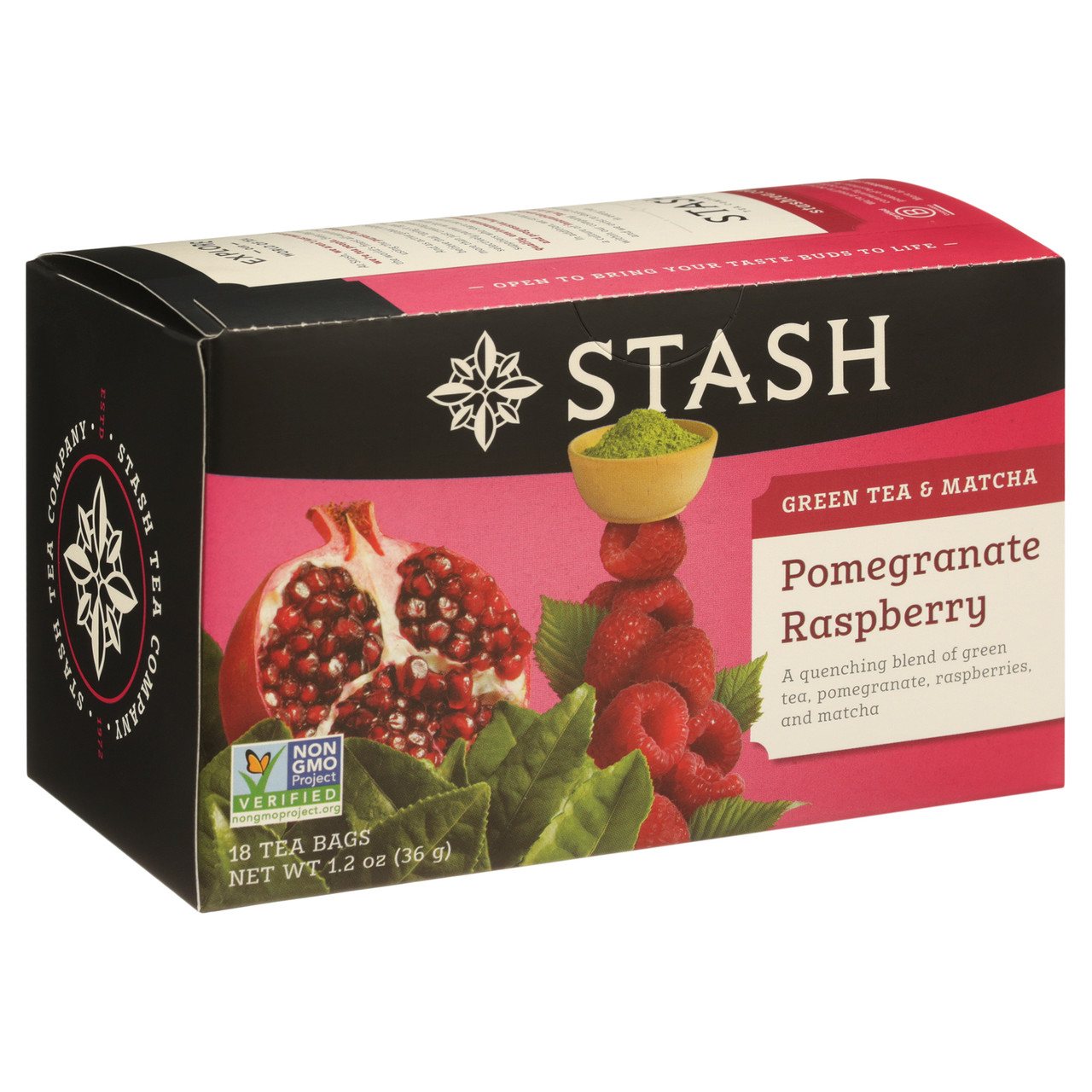 Go natural with Stash Tea Stash Pom Rasp W/Matcha (6×18 BAG). The Stash Tea Company is headquartered in Portland, Oregon. Founded in 1972, the company derives its name from an entertaining aspect of tea folklore. In earlier centuries, tea was a valuable commodity traditionally transported by clipper ship. The ship’s captain often was presented with some of the finest teas for his personal use. This supply was his “stash,” stowed carefully as his “private reserve.” Today, the term still is used to denote anything put away carefully because of its preciousness. Stash Premium Ginger Peach Green Tea is a delicious blend of green tea, juicy peach and sharp ginger with a touch of matcha, the Japanese ceremony tea. Matcha is similar to Gyokuro green tea in that it is an early season, high grade, shade – grown tea. After steaming, the tea leaf is finely ground to produce a light and fine green powder. Stash Tea has been committed to providing premium quality teas and an unsurpassed tea drinking experience. Stash begins with simply excellent tea leaves from the world’s premier tea gardens and all natural botanical ingredients gathered from around the world. Meticulous blending and tasting of every tea ensures you will enjoy full flavor in every cup. . (Note: Description is informational only. Please read the ingredient label on the product for more information and always consult your health professional with any questions prior to use.)