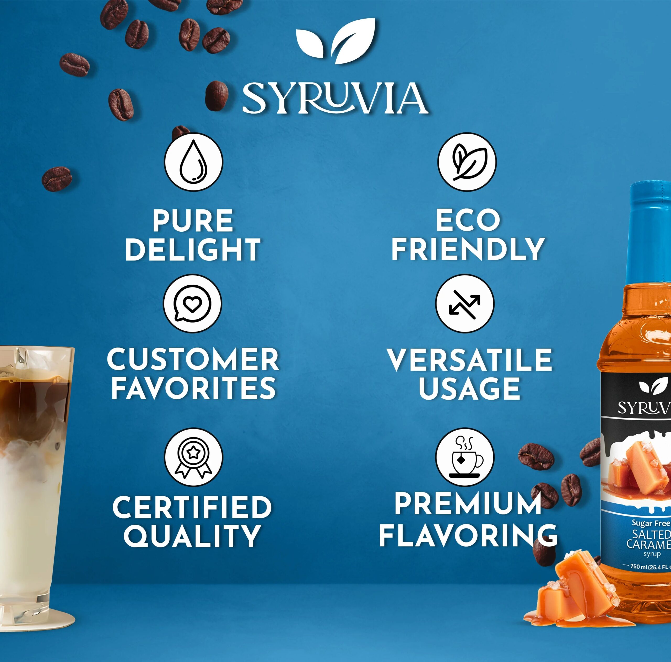- Proudly Made in the USA: Syruvia Sugar-Free Salted Caramel Syrup is crafted in the USA, ensuring exceptional quality and freshness with 0 calories.