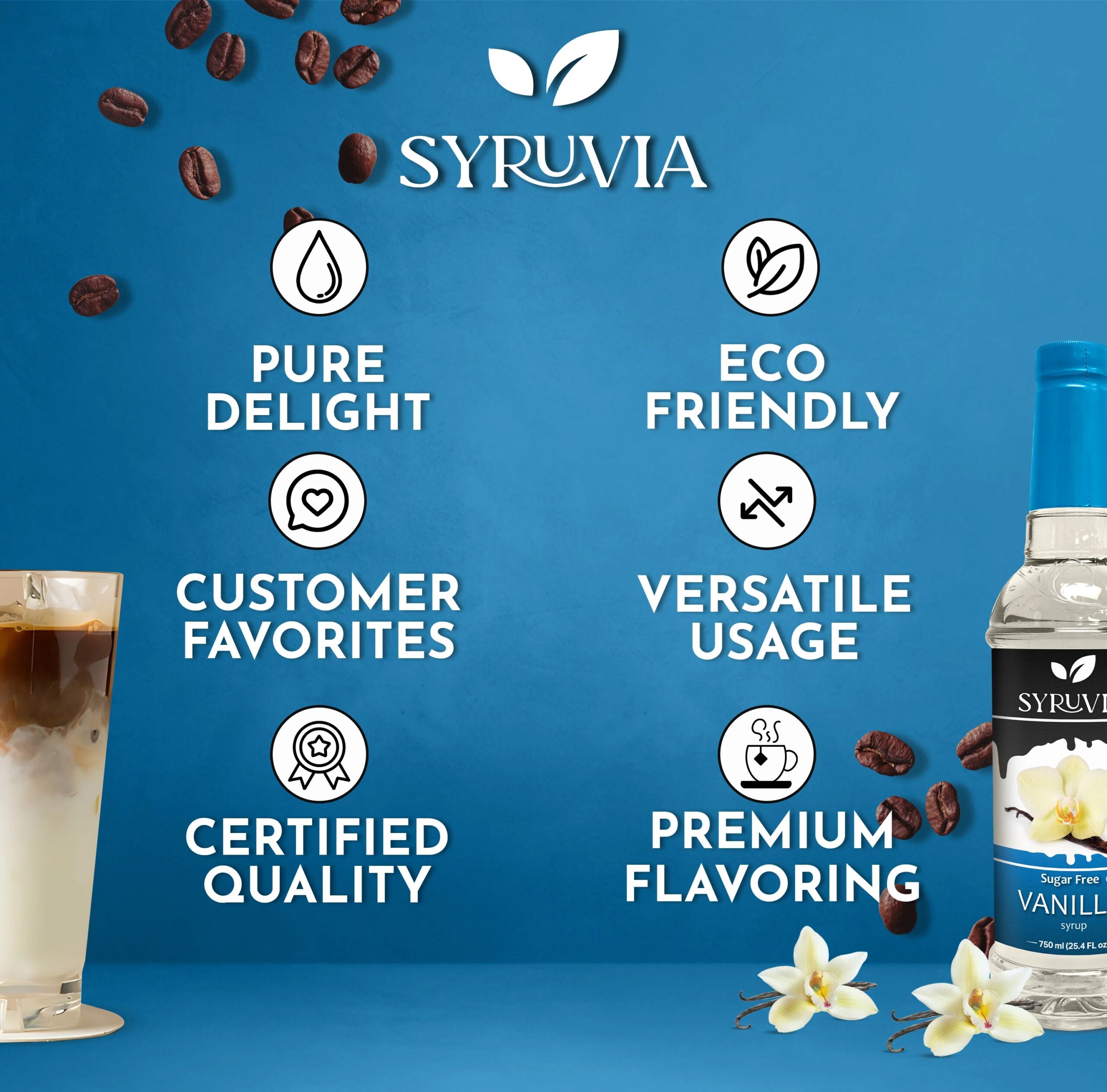 - Sugar-Free Sweetness: Syruvia Sugar-Free Vanilla Syrup provides natural sweetness with no sugar and 0 calories.