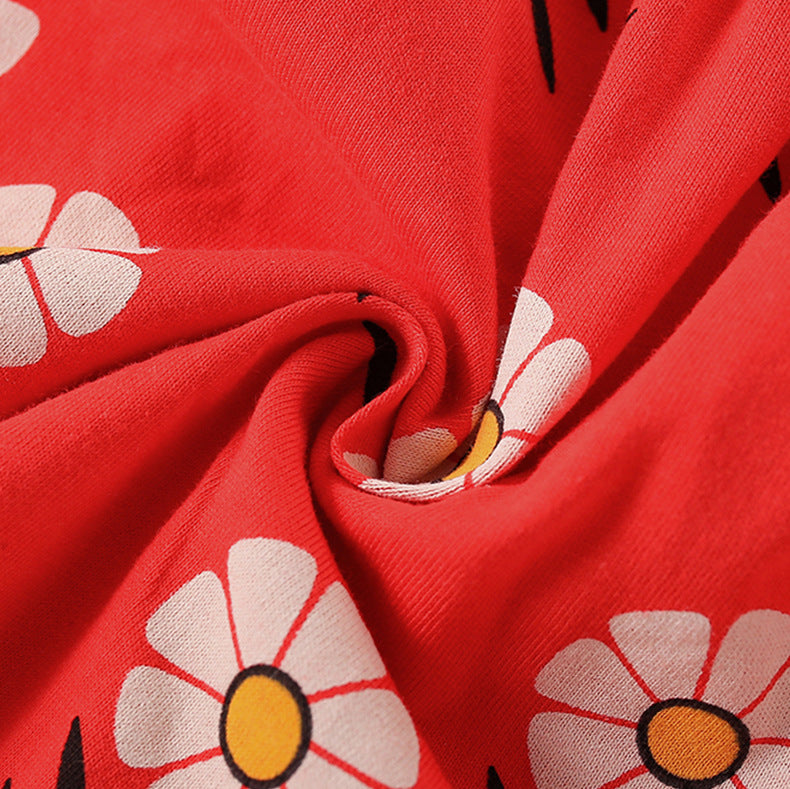 Summer Arrival Flowers Pattern Short Sleeves Crew Neck Dress for Stylish Girls