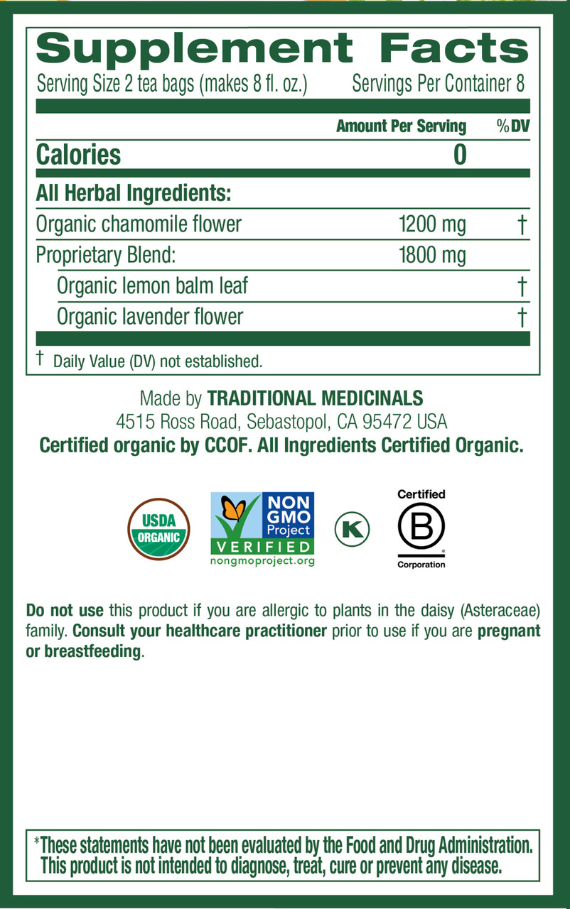 Traditional Medicinals Org Chamomile Classic Tea + Lavender (6×16 Bag)