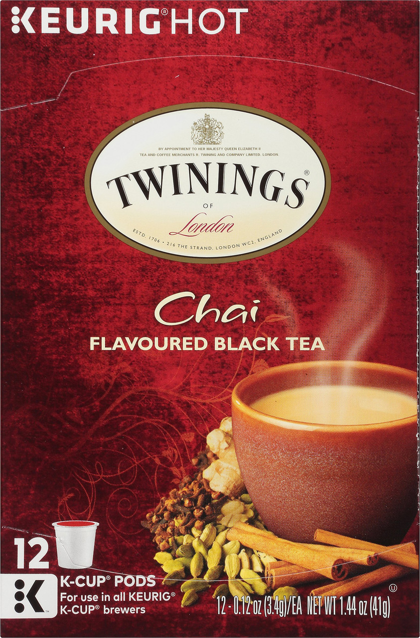 Enjoy Twinings Chai (6×12 CT). The finest black tea expertly blended with the sweet and the savoury spice flavour of cinnamon, cardamom, cloves and ginger to deliver a flavourful tea with a warm, soothing aroma and fresh, spicy taste. (Please note information is descriptional only. Please refer ingredients on product prior to use and please consult your health professional with any health or dietary matters before use.)