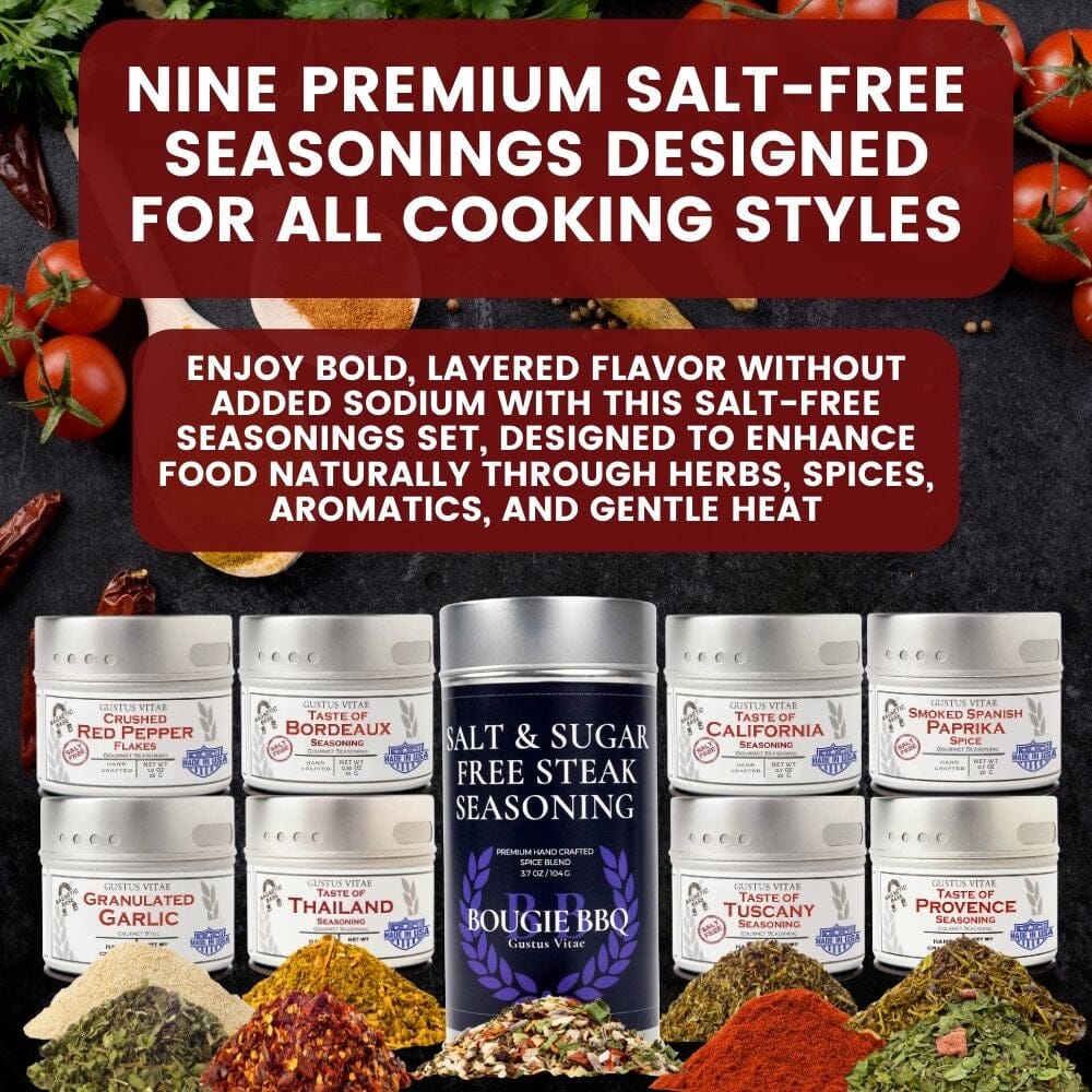 Crafted in small batches with all-natural, non-GMO ingredients, each blend in this collection highlights a different culinary tradition — from French countryside herbs to Italian classics, Thai warmth, smoky paprika, and vibrant California freshness. Whether you’re cooking for dietary needs, personal preference, or simply better flavor, this set empowers you to season confidently and intentionally.