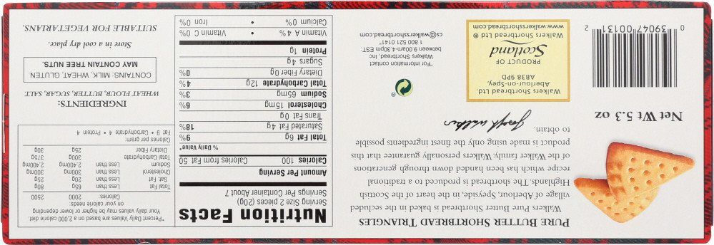 Walkers Shortbread is baked in the Scottish Highlands from just four natural ingredients: butter, sugar, flour, salt. Serve Walkers Shortbread Triangles the next time you have guests over. They are sure to bring elegance to any get together.