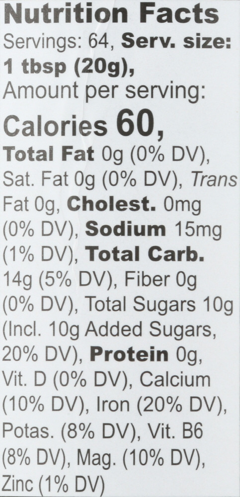 A Natural Byproduct Of The Sugar-Making Process, This Blackstrap-Style Molasses??Contains The Canes’ Vitamins And Minerals–Including Iron, Calcium, B Vitamins And Chromium.??Our Molasses Has A More Complex, Less-Bitter Flavor Than Many Other Molasses.: Kosher