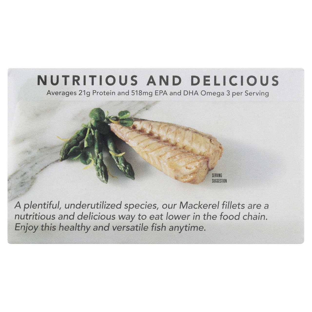 This superabundant North Pacific fish is wild caught without the use of FADs (Fish Aggregating Devices). Wild Planet uses single species targeted purse-seine fishing methods, which virtually eliminate by-catch of other species while also benefiting the overall marine ecosystem. Mackerel is known as Saba in sushi restaurants where it is served grilled. This fish is delicately textured and resembles a fresh tuna steak in flavor. Wild Planet Wild Mackerel Fillets in organic extra virgin olive oil contain 13g protein and an average of 430mg EPA/DHA Omega 3 per serving. Try mackerel as an alternative to tuna in your favorite recipe.
