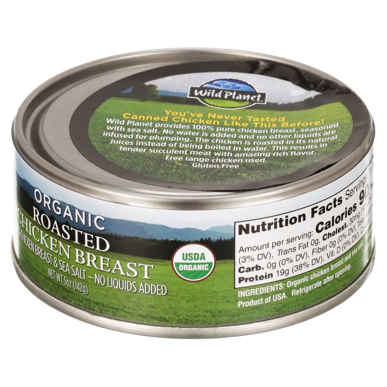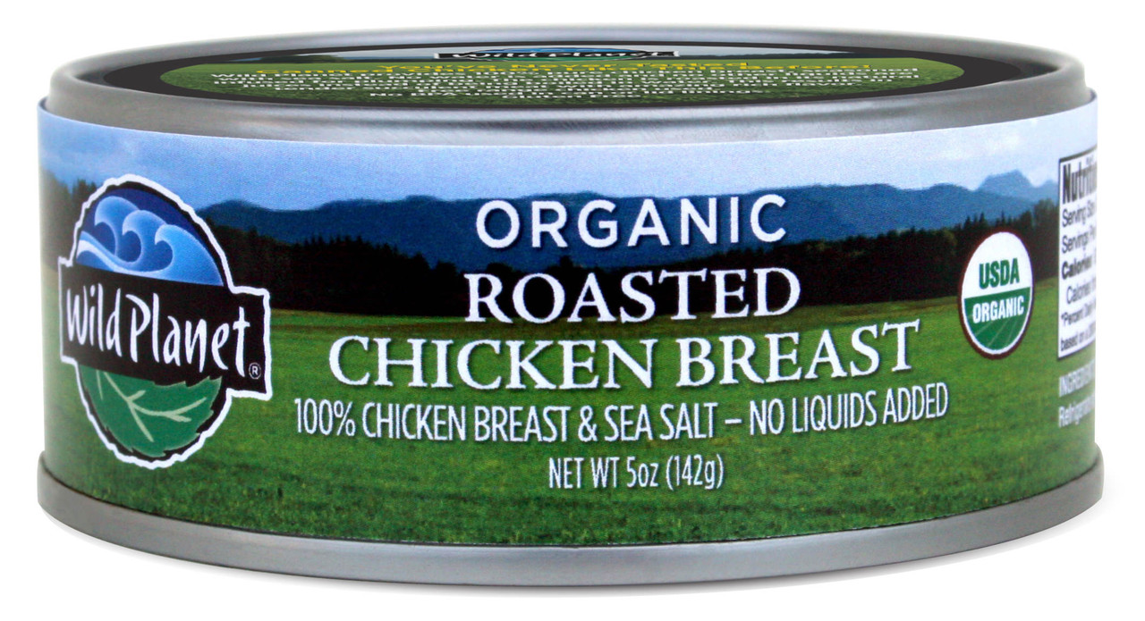 Our new Organic Roasted Chicken is pure skinless, boneless chicken breast meat, roasted right in the can with only a touch of sea salt. Never injected with water, modifying starches or other fillers, this moist, meaty and very flavorful chicken is delicious straight from the can, or perfect for chicken salad, burritos, or as an addition to soups. Quick, easy and versatile, this is the chicken you??ll reach for over and over again for a meal or a snack.